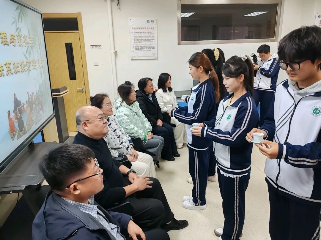 仪式最是温情处,当属“敬茶传情”环节。轻柔的古典乐曲声中,学生代表身着整洁校服,手捧系部出品的“遇见・洛神花”茶饮,缓步走向导师,躬身轻声道:“老师请喝茶。”导师们接过素雅茶盏,浅品香茶,眉眼间满是欣慰。一杯茶,盛着学生对师长传道授业解惑的感恩,对医者仁心传承的渴望;盛着师生“知识传递、品德接力”的无声承诺。“新竹高于旧竹枝,全凭老干为扶持”,一场敬茶仪式让“尊师重道”的传统美德在新时代医教场景中焕发出鲜活生机。据悉,本次敬茶仪式所用茶饮为健康管理与服务系医学营养教研室匠心出品,茶饮由洛神花、山楂、甜叶菊等天然食材科学配比而成,不仅口感上佳,且兼具抗氧化、助消化、舒缓情绪等功效。
