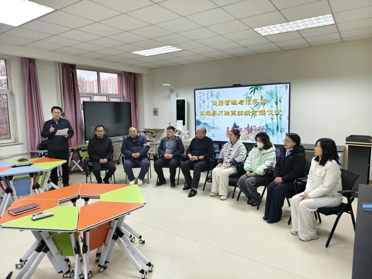 为扎实推动学校“四维导师制”育人新模式落地见效,促进学生全面成长成才,2025年11月24日下午,健康管理与服务系四维导师联系班级对接仪式在医护实训中心A座106室温情举办。