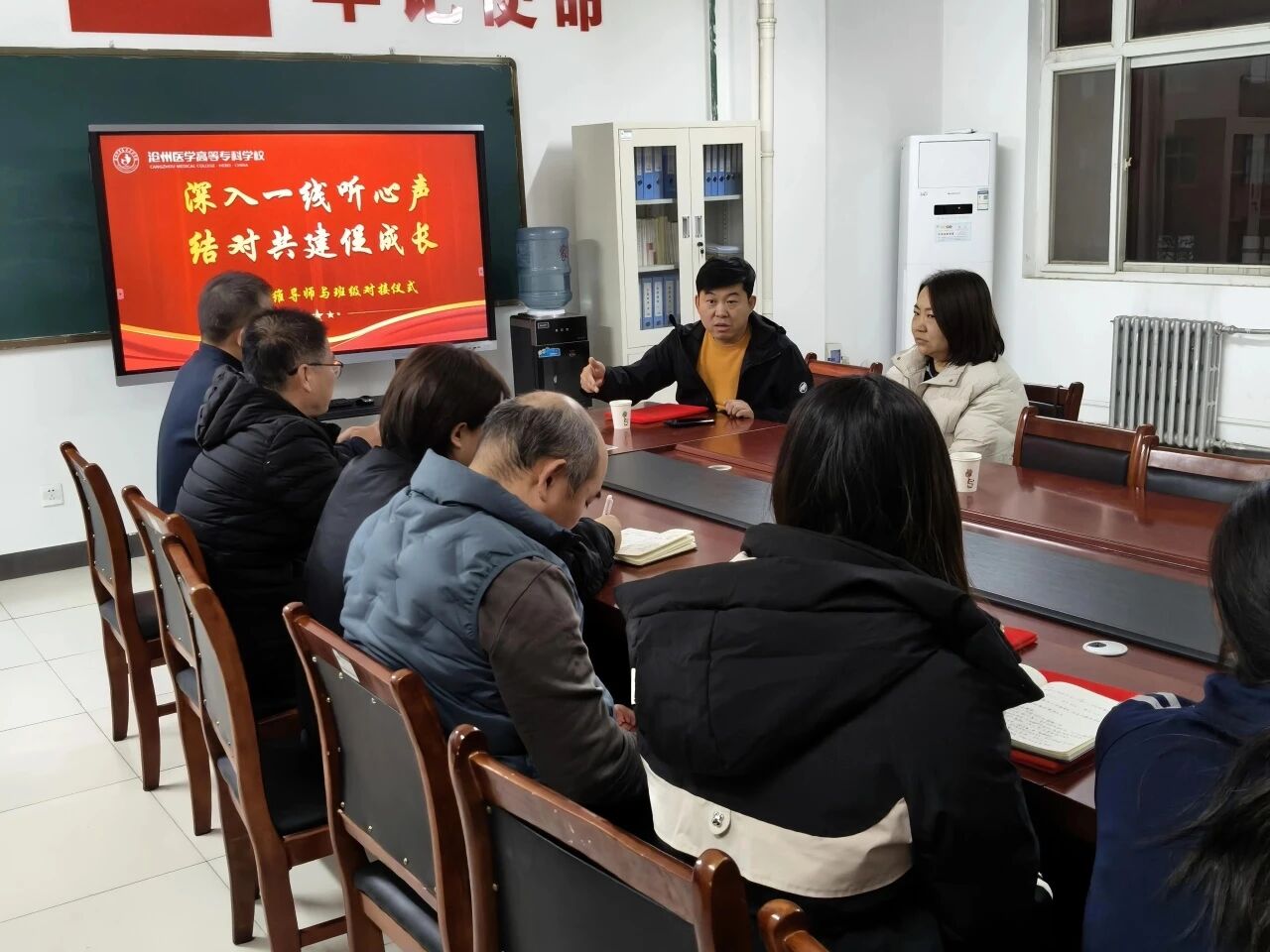 为深入落实《中共沧州医学高等专科学校委员会领导干部联系班级制度》,进一步畅通师生沟通渠道,助力学生健康成长,11月21日,口腔系举行学校四维导师与班级学生现场对接仪式。本次活动以“深入一线听心声,结对共建促成长”为主题,通过面对面交流、座谈会等形式,搭建起师生交流、互动成长的直通桥梁。