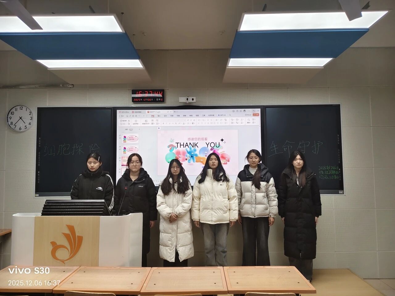 2025年12月6日下午15:00-16:00,灼焱动漫社组织的“细胞探险 生命守护”观影会在第一教学楼1-1-1顺利完成。活动开始,主持人介绍活动规则与流程。主持人开场后,用3分钟通俗铺垫《工作细胞》核心设定,通过“红细胞主要功能是什么”的简单提问预热,10分钟完成导入。30分钟观影后开始回答问题,补充白细胞杀菌原理等关键知识点。接下来围绕影片内容设置9道基础题目(如“消灭肺炎链球菌的主要细胞”“血小板的作用”),答对者加分,在答题过程中充分调动观众的参与热情与对专业知识动漫化的兴趣与积极态度,让观众在剧情中感受科学知识的魅力。 观影结束后进行的抢答环节,同学们都积极作答,氛围良好。工作人员在现场实时记录得分,确保比赛的公平与透明。最后由主持人对本次活动进行总结,并邀请获奖同学上台领奖,全体合影留念,为活动画上圆满的句号。