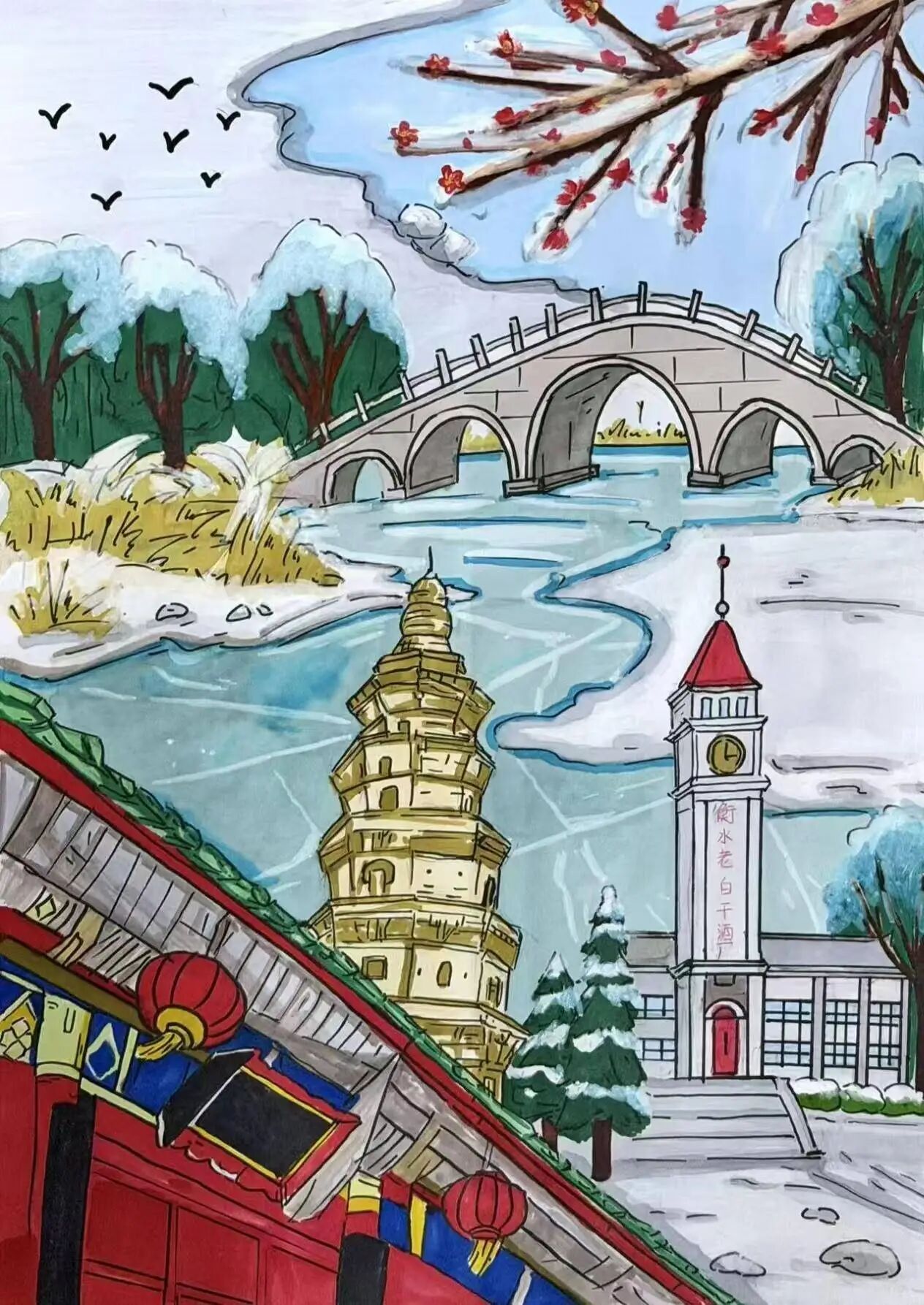 冬日岁暮的家山藏着每个人心底最柔软的眷恋,本次手绘比赛以素笺为媒、笔墨为桥。鼓励参与者用画笔定格霜雪炊烟里的家乡风貌,捕捉乡间巷陌的温情瞬间。在一笔一画的创作中,人们得以重温故土的记忆碎片,同时凝聚起师生群体对家乡、对生活的情感共鸣,营造出珍视故土、热爱生活的校园文化氛围,助力校园精神文化生活的丰富与发展。