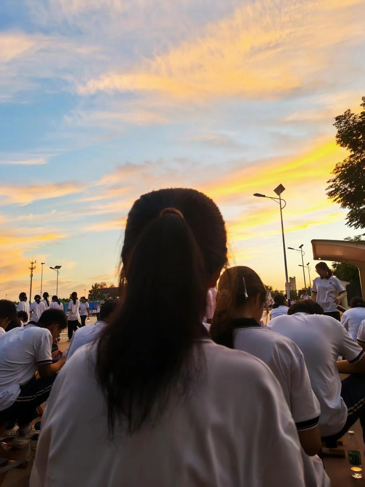 夕阳为幕,身着统一白衫的学子们,或静候,或忙碌,在军训场地上勾勒出青春朝气的剪影,每一处都洋溢着专属于军训的独特风采。
