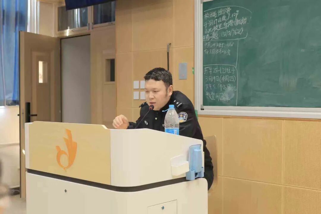 现场民警向全体学生干部普及防范核心准则,强调牢记“三不一多”原则:未知链接不点击,陌生来电不轻信,个人信息不透露,转账汇款多核实。同时引导学生增强法治观念,认清出租、出借、出售银行卡、电话卡的法律风险,切勿沦为电信诈骗“工具人”,争做自身安全的守护者、反诈知识的传播者、警校联动的参与者。民警还向同学们发出倡议,鼓励大家争当校园反诈先锋:主动学习反诈知识,提升辨别能力;发现可疑线索及时上报,共同维护平安校园。活动现场公布反诈咨询与线索上报电话:5500321,方便师生及时求助、快速举报。
