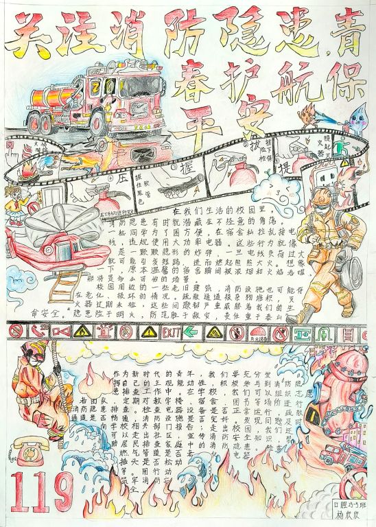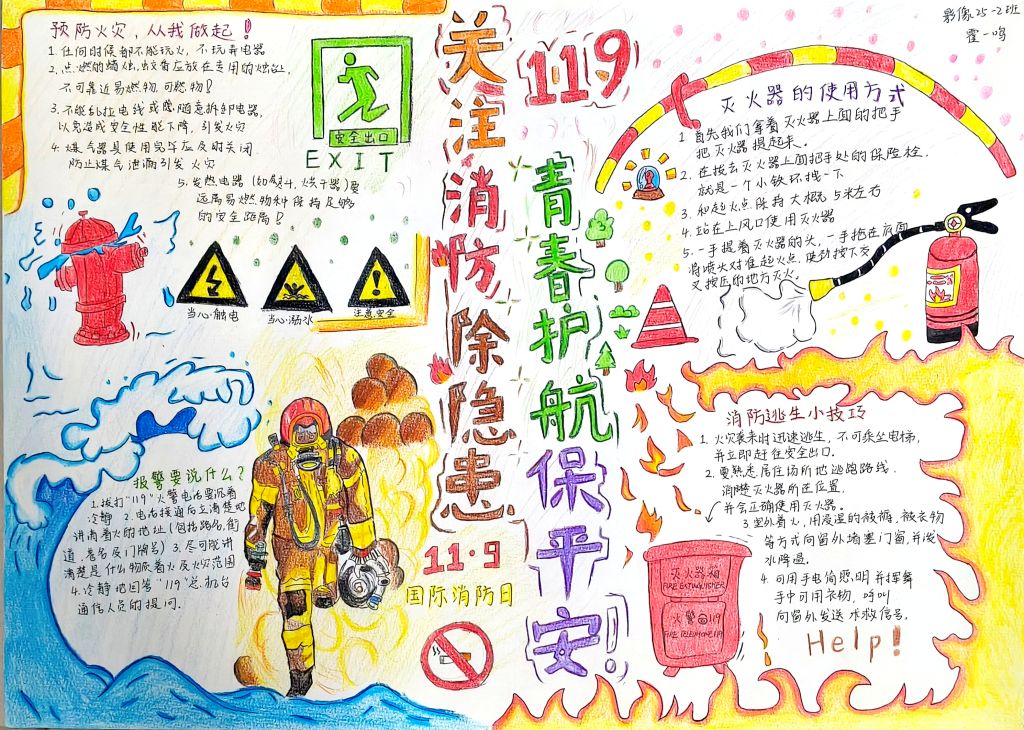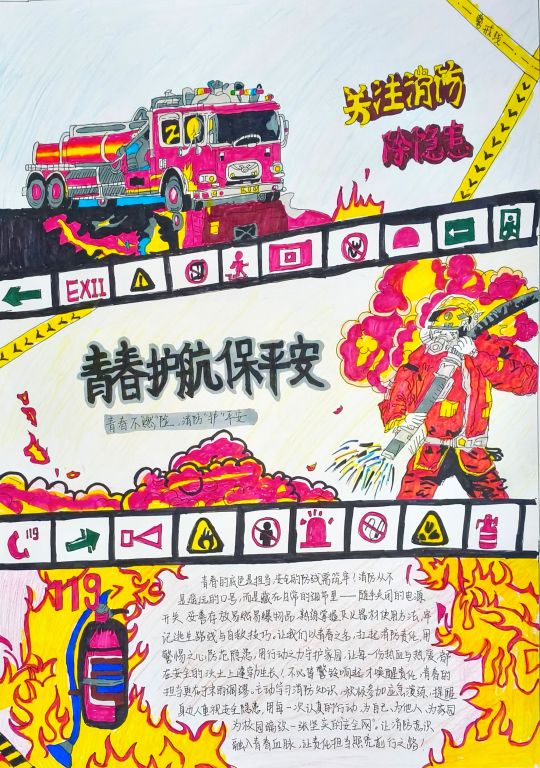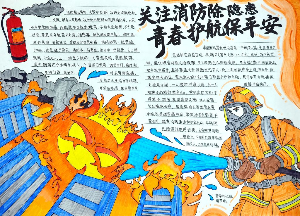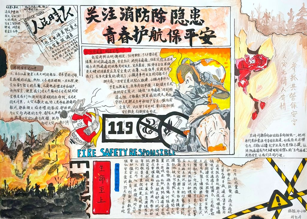 消防安全教育是校园安全的核心支柱。为进一步筑牢校园安全防线、提高同学们校园消防安全意识、凝聚守护校园的责任担当,校团委特举办“关注消防除隐患,青春护航保平安”主题手抄报活动。