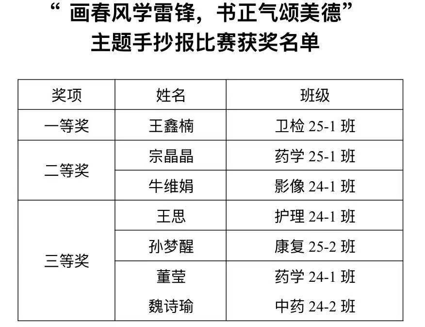 评选已然落下帷幕,本次手抄报比赛中同学们用画笔与创意诠释雷锋精神文化,展现同学们的创作热情与责任担当。经校团委组织部严格评审,在全部参赛作品中,共评选出六幅优秀作品。获奖名单及获奖作品如下: